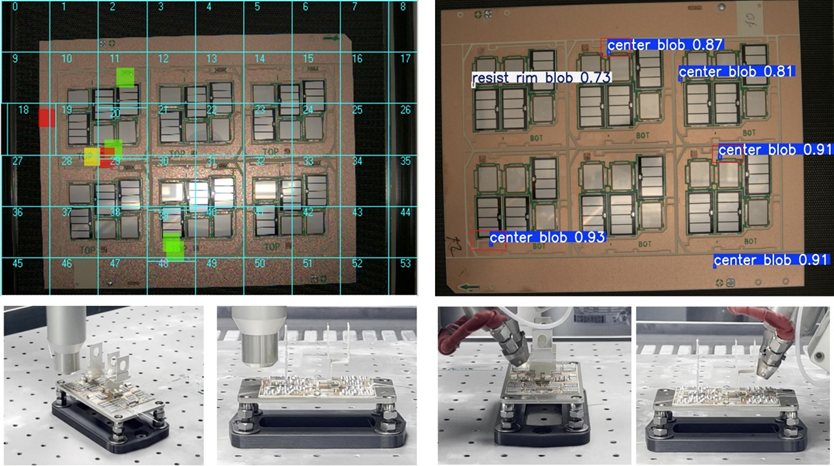 Obrázok: Ukážka moderných technológií využitých v projekte: umelá inteligencia na automatickú detekciu výrobných chýb a technologické procesy čistenia a ochrany výkonových modulov, ktoré prispievajú k vyššej kvalite, spoľahlivosti a dlhšej životnosti elektronických zariadení.